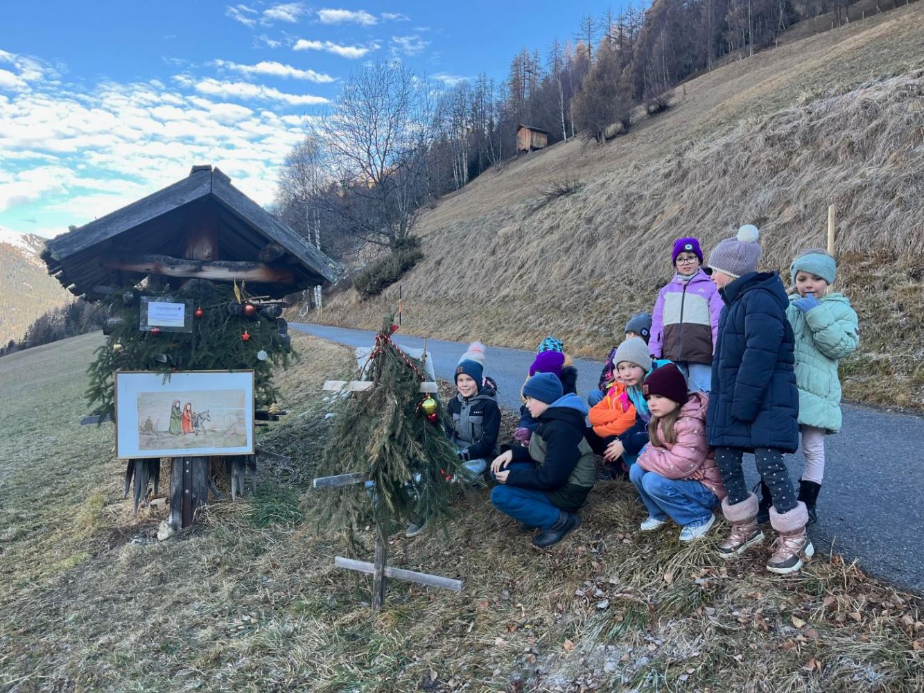 In der Vorweihnachtszeit machten sich die Kinder der Volksschule gemeinsam auf den besonderen Weihnachtsweg in Fendels. Inmitten der Natur warteten zahlreiche liebevoll gestaltete Stationen, die zum Entdecken, Zuhören und Mitmachen einluden.