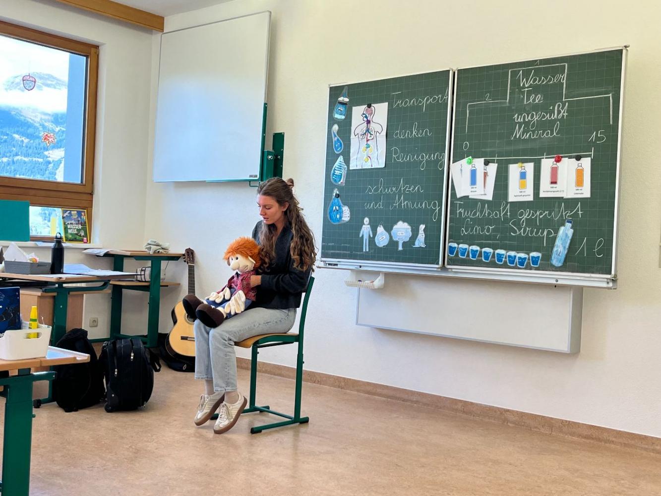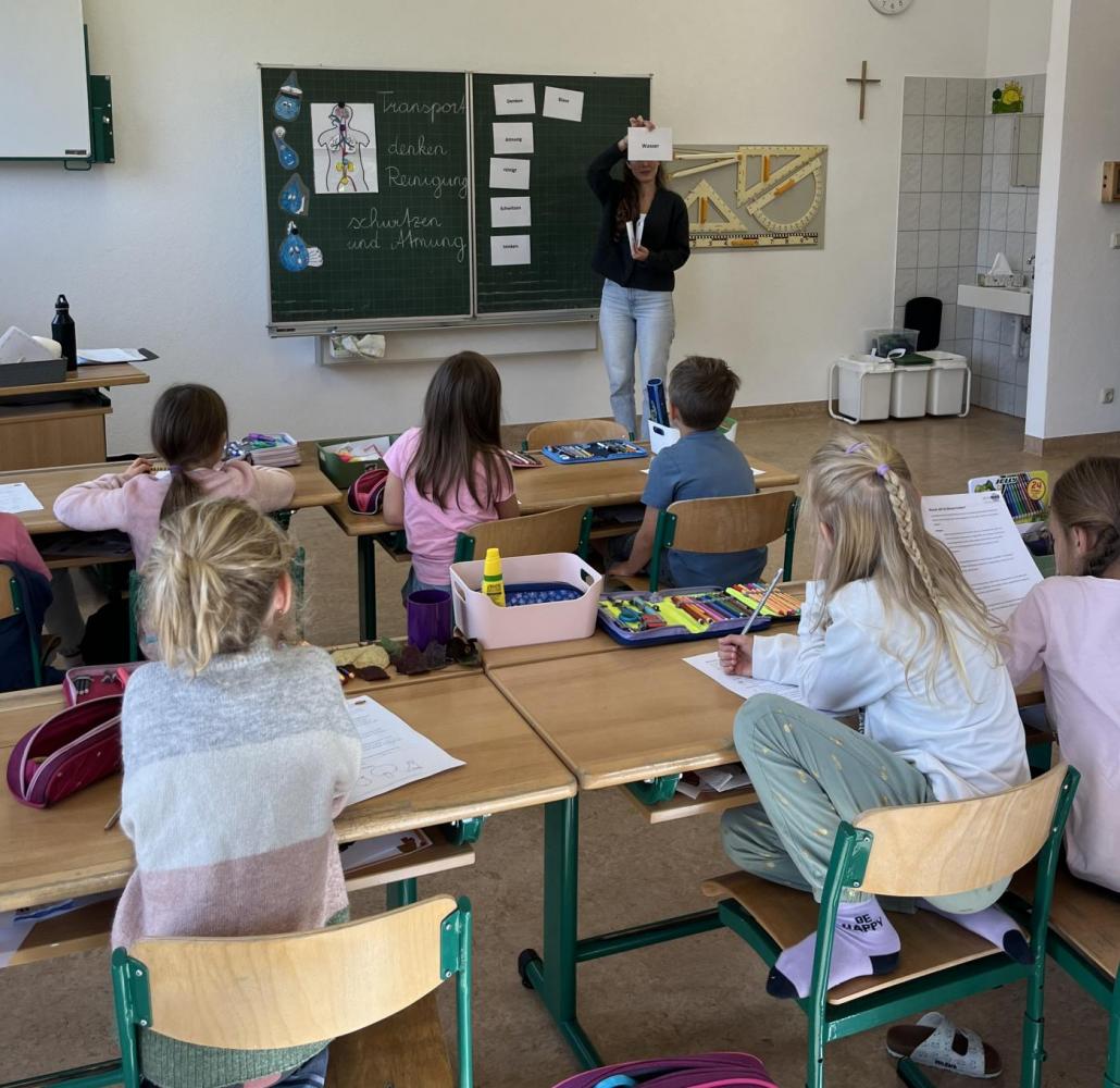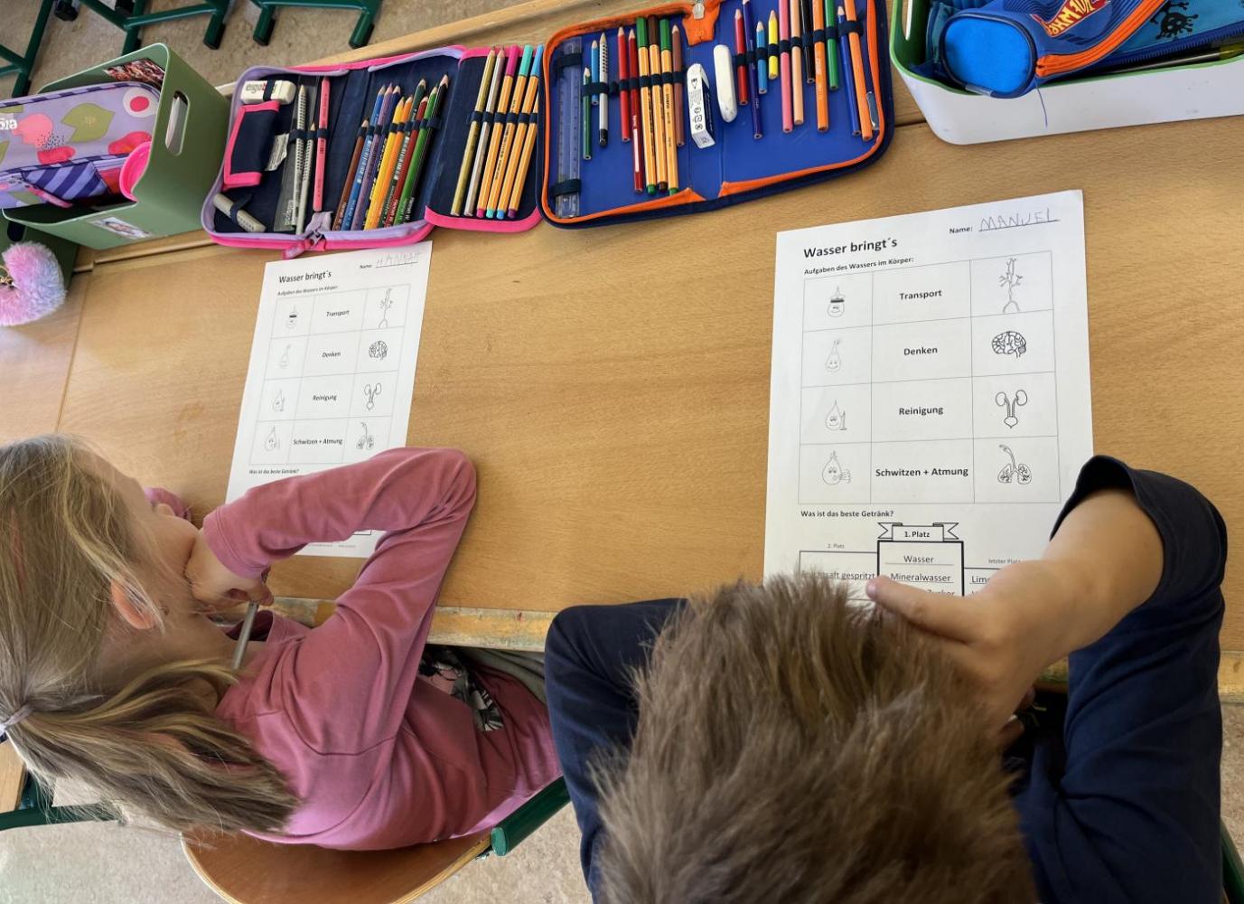 In einem Workshop erfuhren die Kinder, warum Wasser für unseren Körper so wichtig ist. Sie lernten, dass Wasser viele Aufgaben übernimmt – es hilft beim Denken, reguliert die Körpertemperatur, transportiert Nährstoffe und sorgt dafür, dass wir uns fit und konzentriert fühlen. Außerdem wurde anschaulich besprochen, wie viel wir täglich trinken sollten und welche Getränke gut oder weniger geeignet sind.