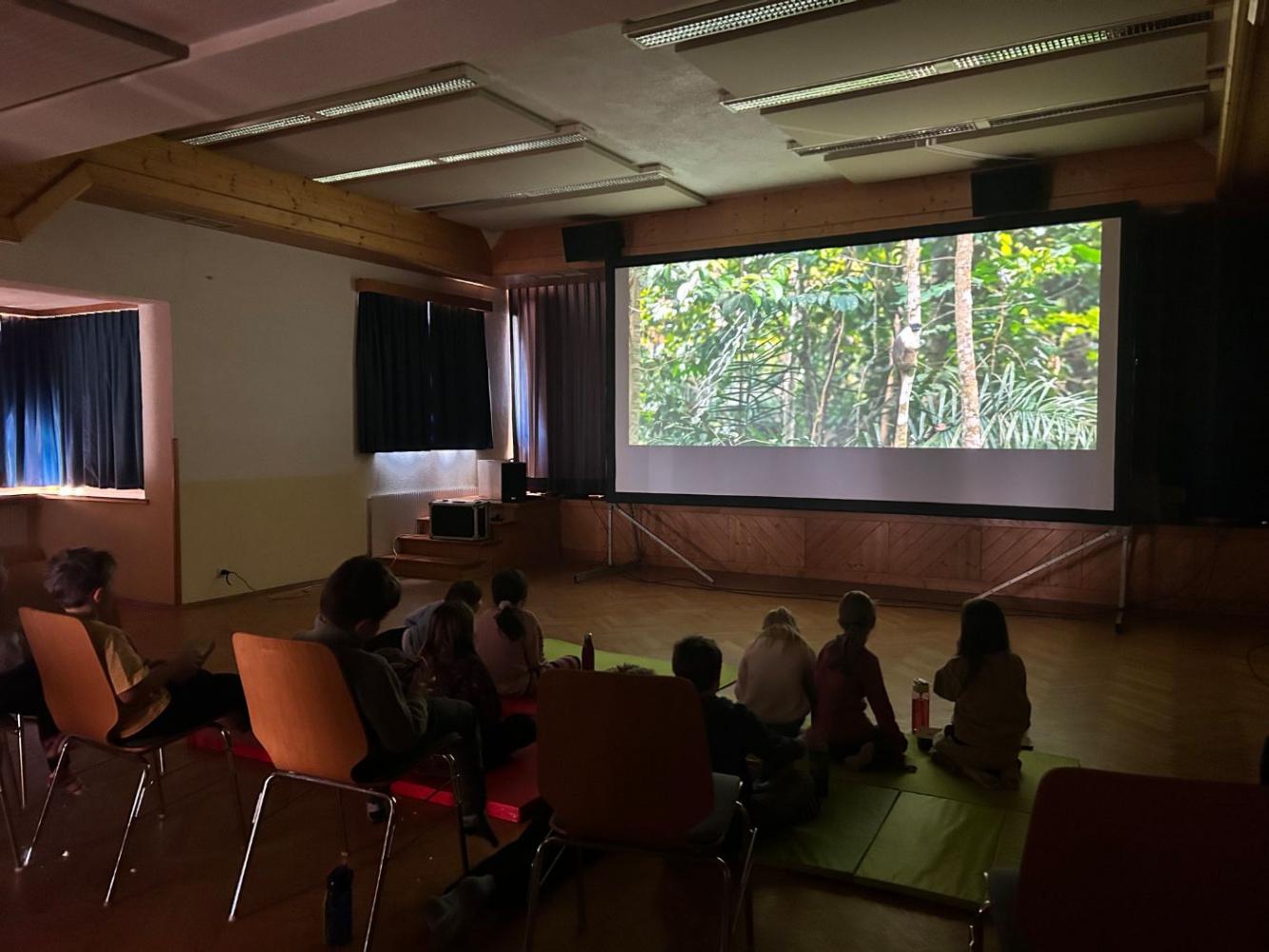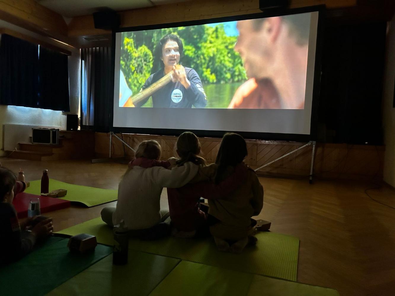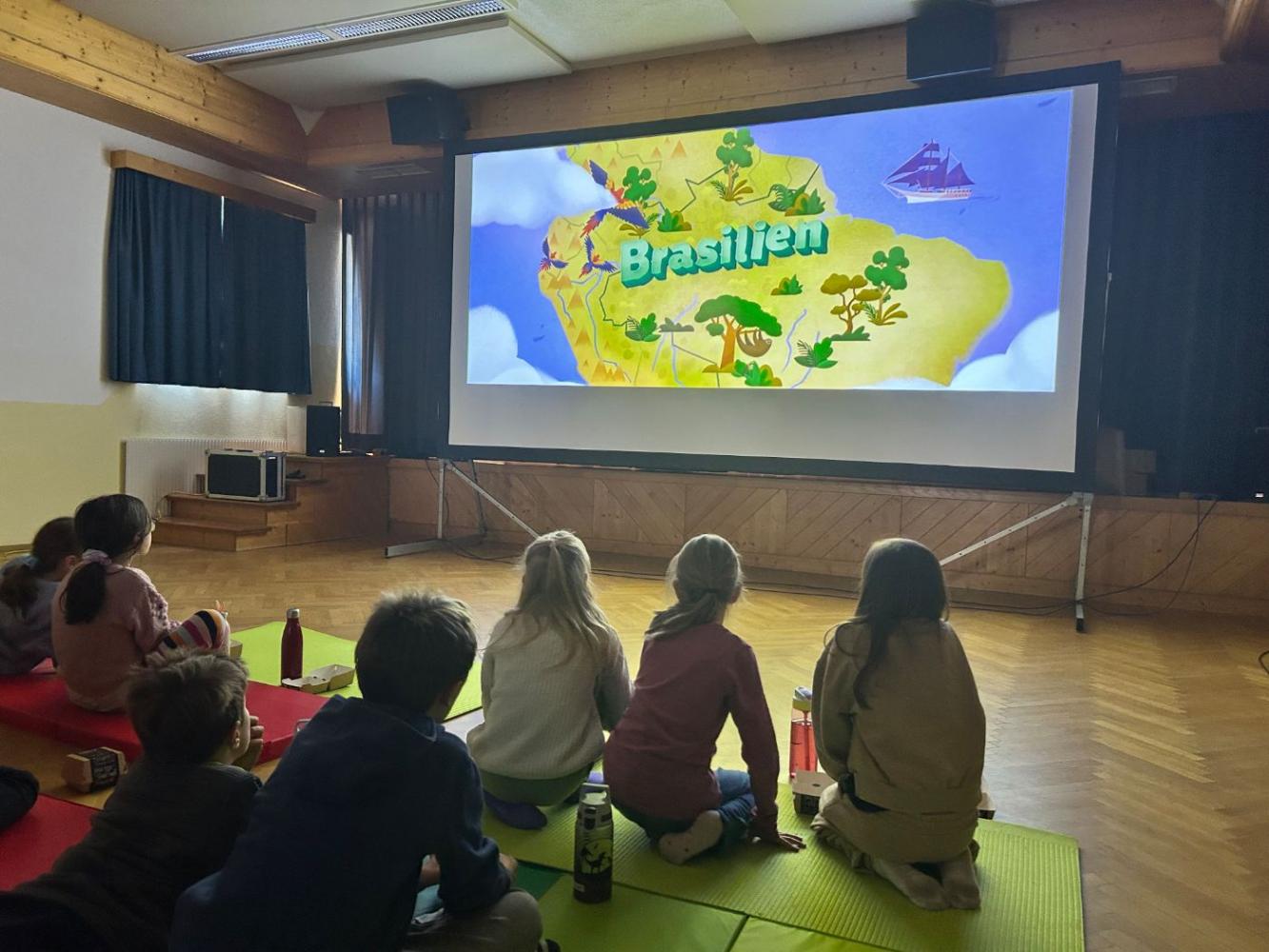 Am Donnerstagnachmittag verwandelte sich der Gemeindesaal in ein kleines Kino: Unsere Schülerinnen und Schüler hatten die Gelegenheit, gemeinsam den spannenden Schulfilm „Checker Tobi und die Reise zu den fliegenden Flüssen“ zu erleben. Dank der großartigen Unterstützung des Medienzentrums Innsbruck, das uns hochwertige Technik zur Verfügung stellte, konnten wir echtes Kinofeeling schaffen – mit großer Leinwand, klarer Projektion und beeindruckendem Sound.