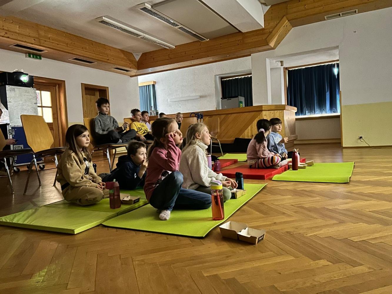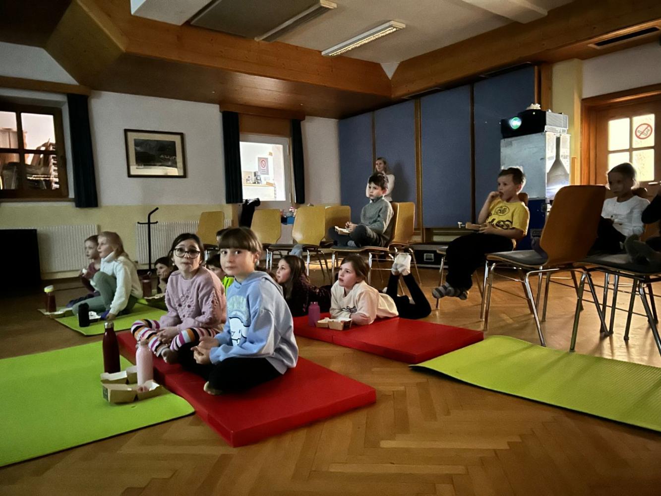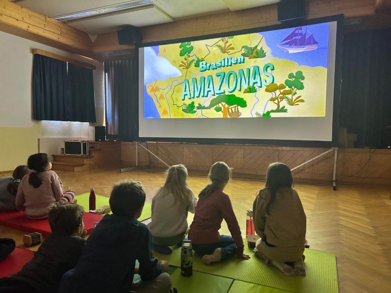 Am Donnerstagnachmittag verwandelte sich der Gemeindesaal in ein kleines Kino: Unsere Schülerinnen und Schüler hatten die Gelegenheit, gemeinsam den spannenden Schulfilm „Checker Tobi und die Reise zu den fliegenden Flüssen“ zu erleben. Dank der großartigen Unterstützung des Medienzentrums Innsbruck, das uns hochwertige Technik zur Verfügung stellte, konnten wir echtes Kinofeeling schaffen – mit großer Leinwand, klarer Projektion und beeindruckendem Sound.