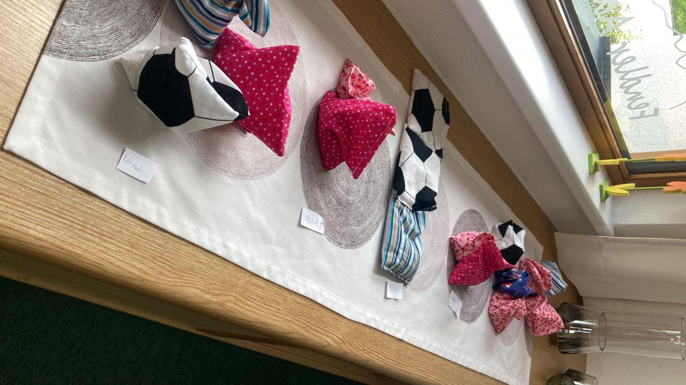 Die Ergebnisse können sich sehen lassen – jedes Säckchen ist ein Unikat! Mit viel Begeisterung wird nun in den Pausen und vor dem Unterricht fleißig geübt. Das Projekt war nicht nur ein voller Erfolg, sondern auch ein tolles Beispiel dafür, wie Lernen mit Kopf, Herz und Hand gelingen kann.