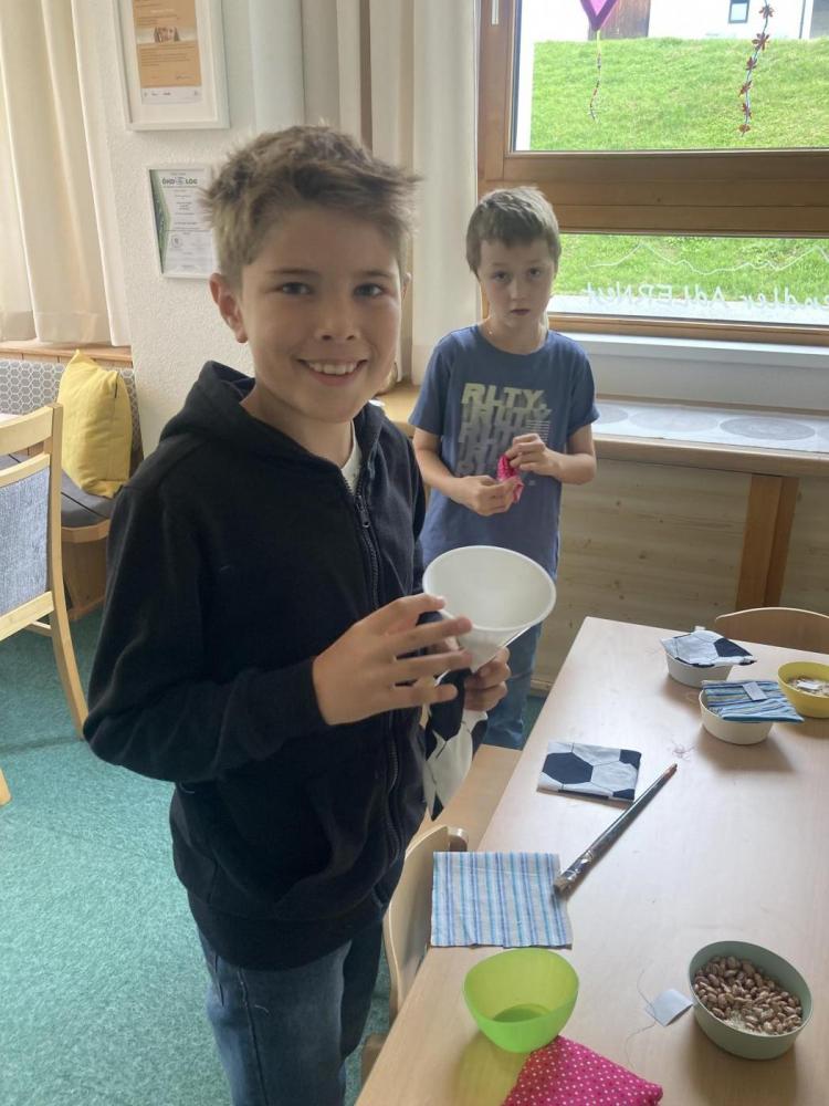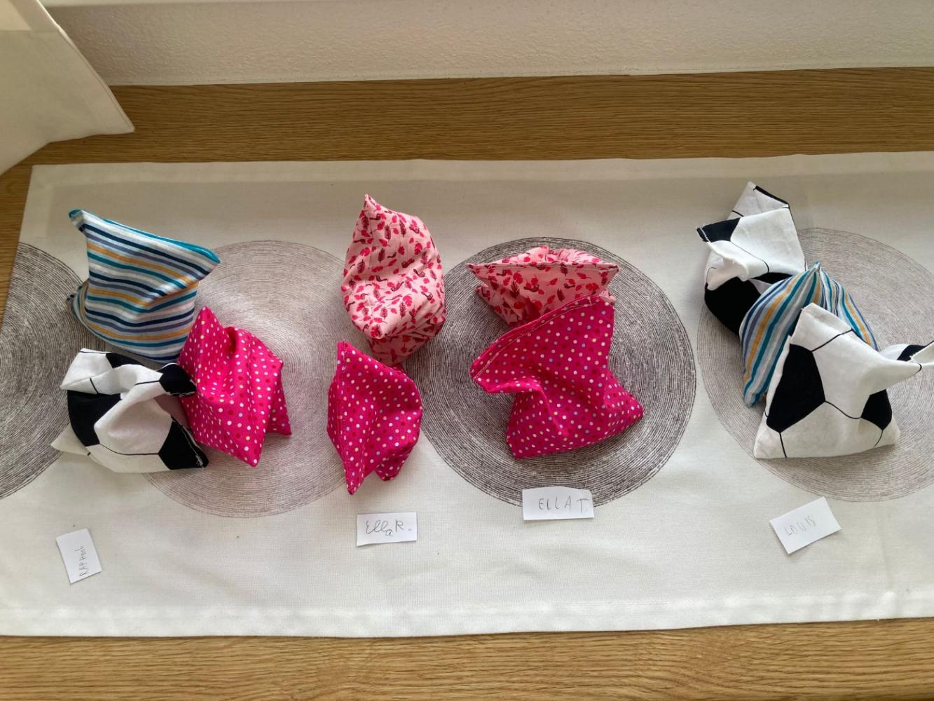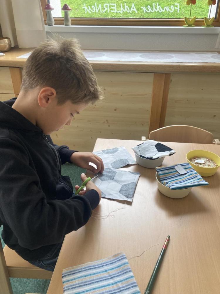 Dabei wurden mathematische, kreative und praktische Fähigkeiten miteinander verbunden: Die Kinder suchten sich ihre Lieblingsstoffe selbst aus, maßen sorgfältig ab, schnitten zu, wogen das Füllmaterial ab und nähten mit viel Geschick ihre eigenen Jongliersäckchen.