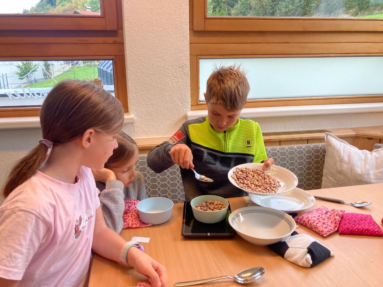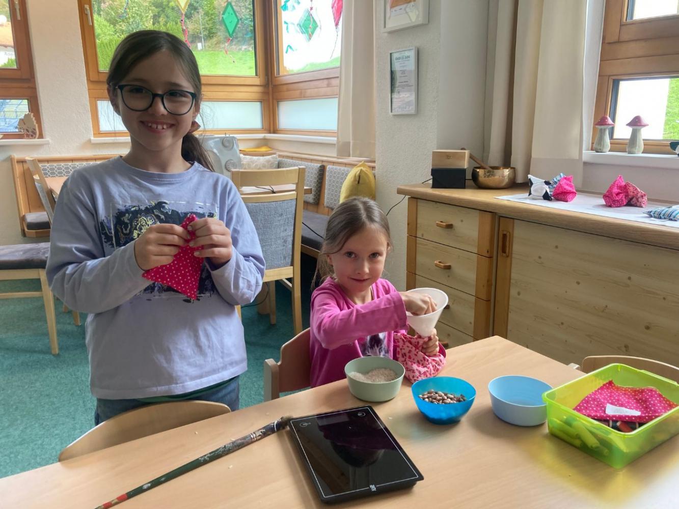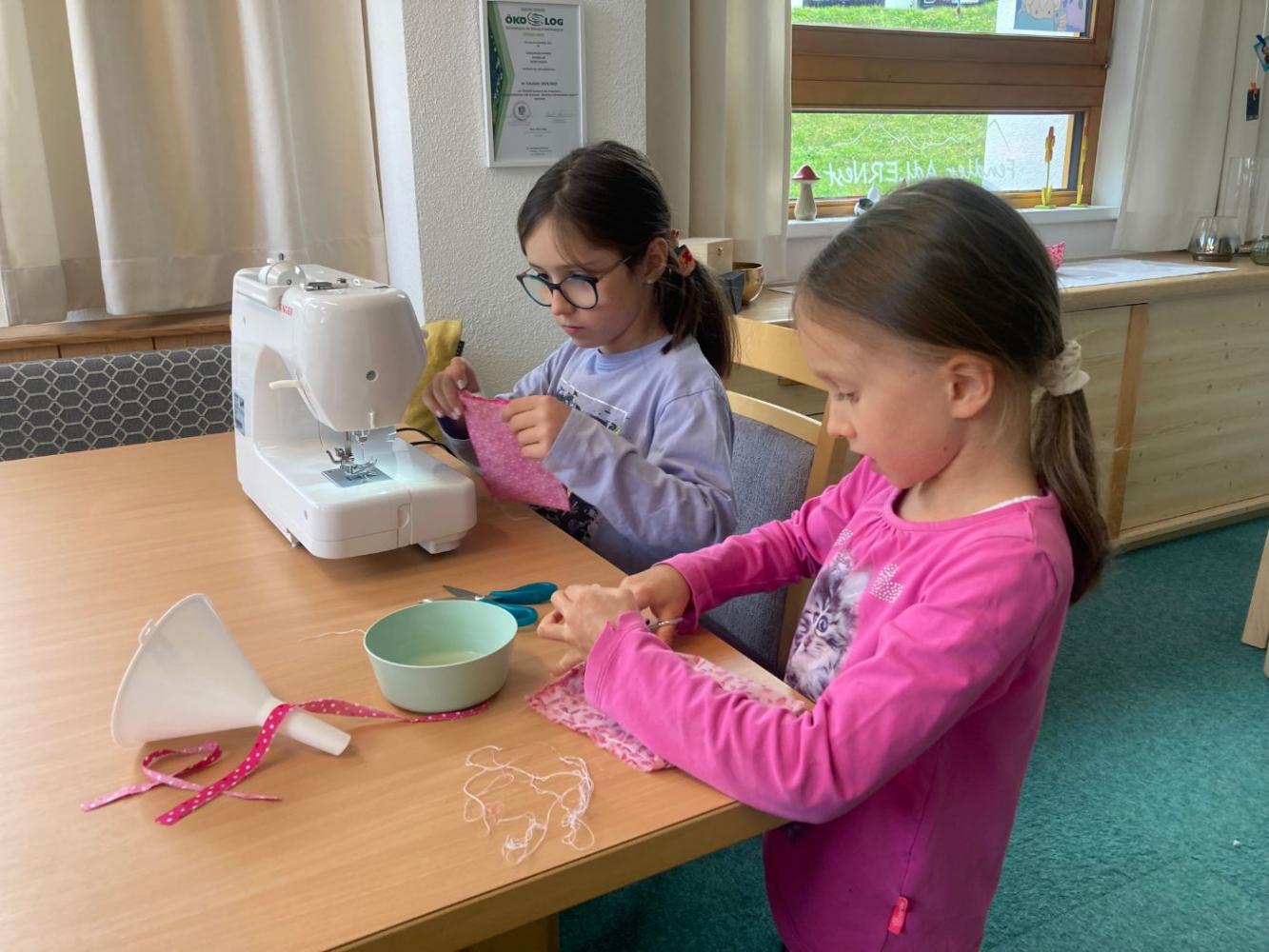 Dabei wurden mathematische, kreative und praktische Fähigkeiten miteinander verbunden: Die Kinder suchten sich ihre Lieblingsstoffe selbst aus, maßen sorgfältig ab, schnitten zu, wogen das Füllmaterial ab und nähten mit viel Geschick ihre eigenen Jongliersäckchen.