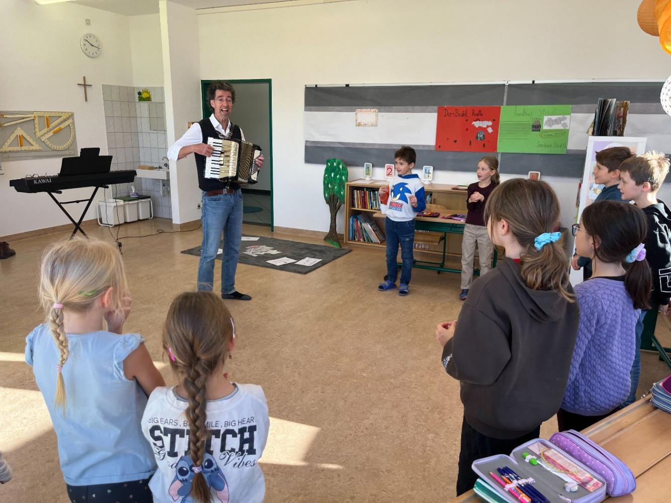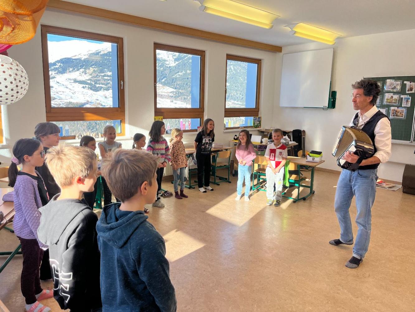 Im Rahmen des Tiroler Kulturservice durften wir heute einen besonderen Gast an unserer Volksschule begrüßen. Der erfahrene Musiker Albert Frey gestaltete mit seiner mitreißenden Art eine musikalische Unterrichtsstunde, die die Kinder von der ersten Minute an fesselte.
