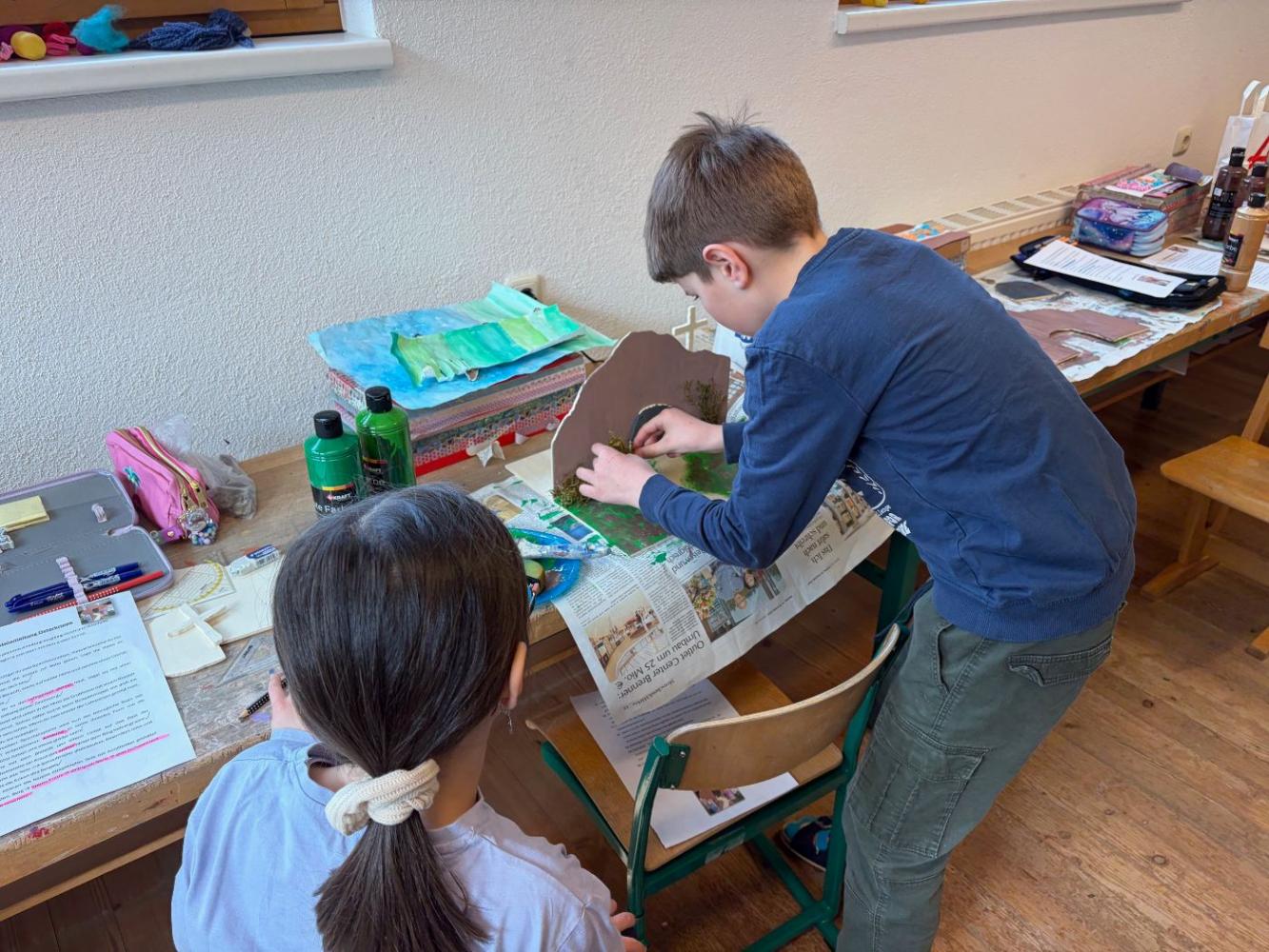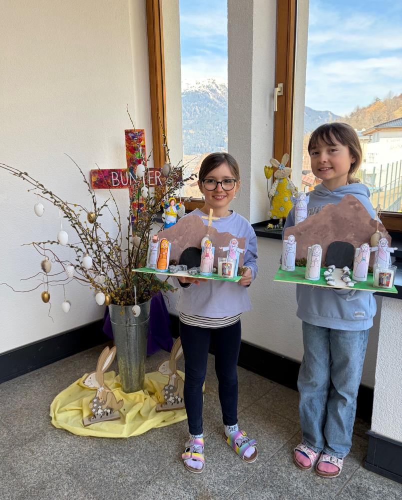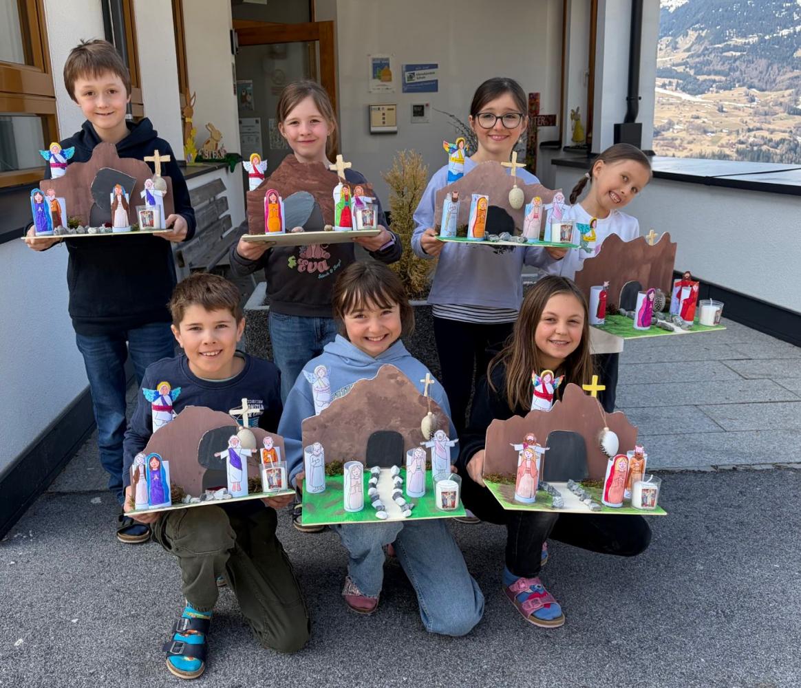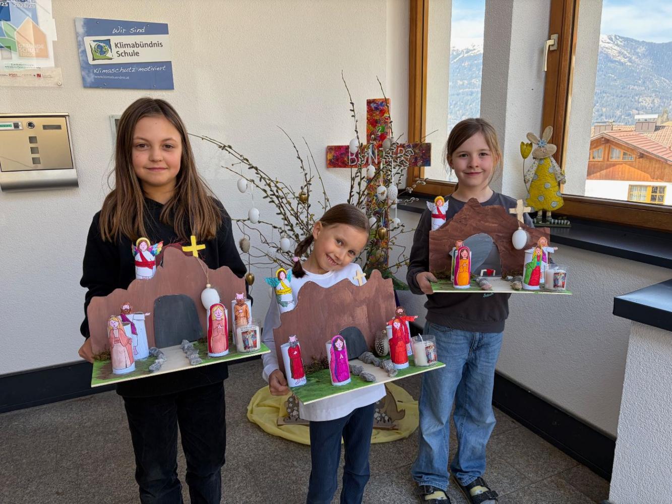 Mit viel Freude, Kreativität und Sorgfalt gestalteten die Kinder wunderschöne Osterkrippen. Diese wurden anschließend im Rahmen des Religionsunterrichts die Kirche gebracht und dort feierlich aufgestellt.