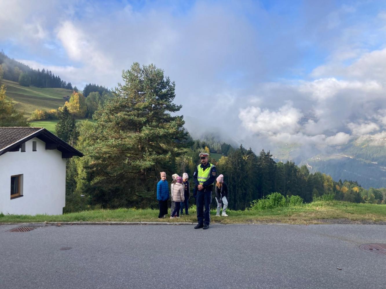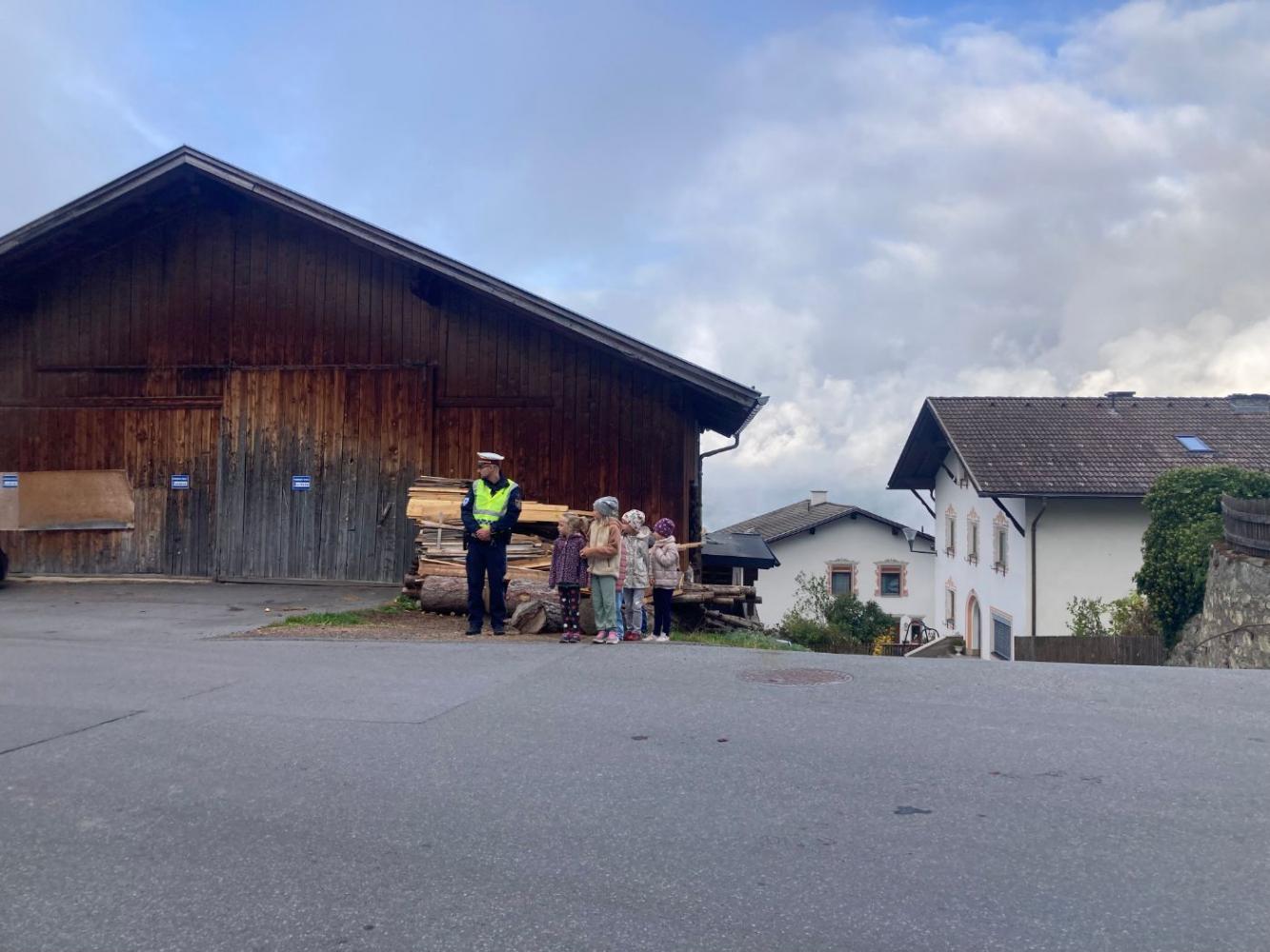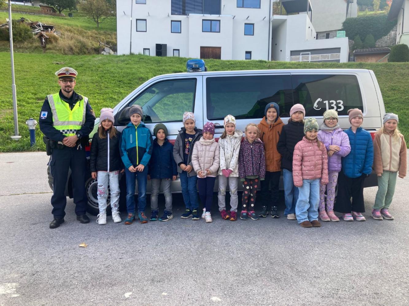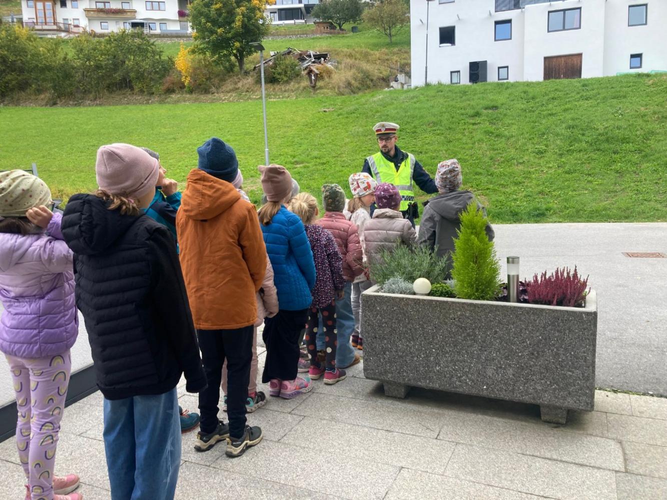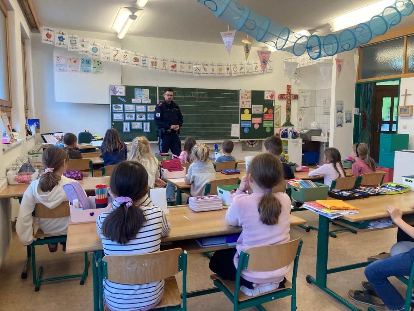 Im Rahmen der Verkehrserziehung besuchte ein Polizist aus Ried am Freitag unsere Schule, um den Schülerinnen und Schülern das richtige Verhalten im Straßenverkehr näherzubringen. Zunächst wurde im Klassenzimmer theoretisches Wissen vermittelt: Wie verhalte ich mich richtig auf der Straße bzw. am Gehsteig? Worauf muss ich an einer Kreuzung achten? Was bedeutet "sicherer Schulweg"?